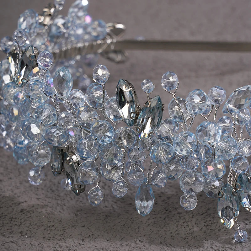 5 Colors Handmade Wedding Bride Luxury Red Blue Rhinestones Tiaras and Crowns Bridal Headband Costume Hair Accessories for Women