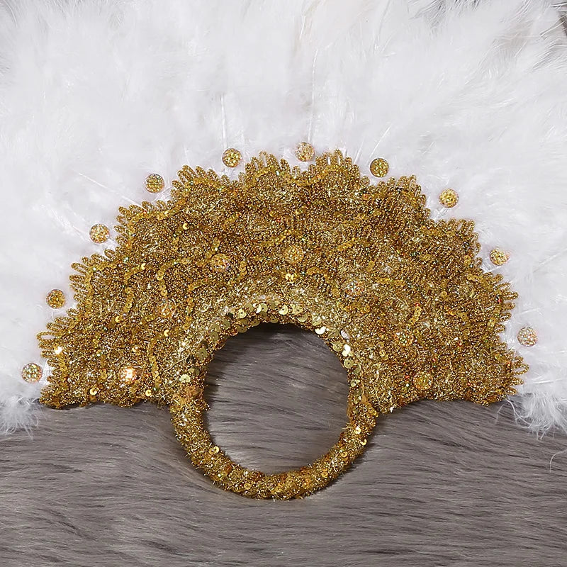 An elegant feather fan, pure white feather decoration, romantic fan, the perfect choice for photography props